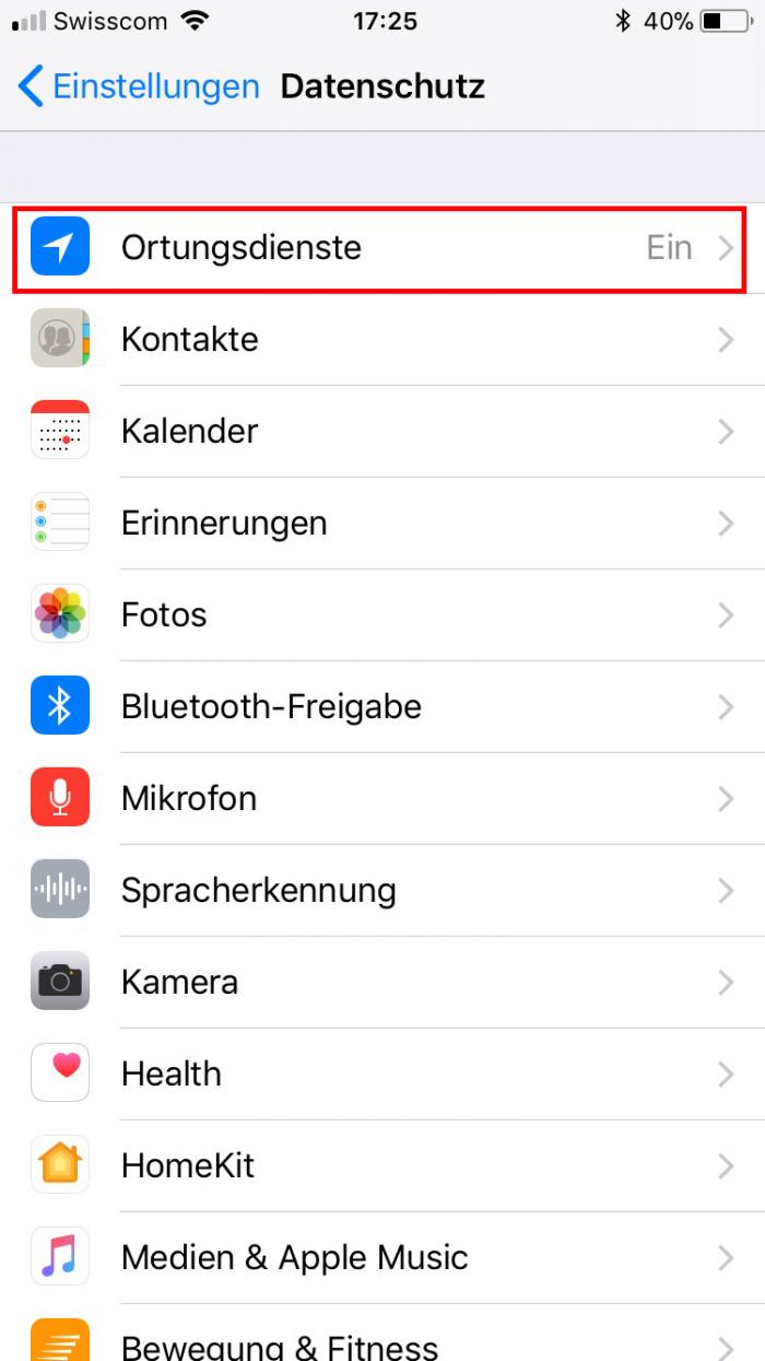 Damit Apps und Webseiten auf den Standort des iOS-Gerätes zugreifen können, müssen die Ortungsdienste eingeschaltet sein.
