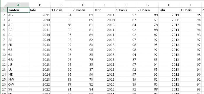 Markieren Sie alle Daten in der Tabelle und kopieren sie diese mit «Control» + «c» in die Zwischenablage.