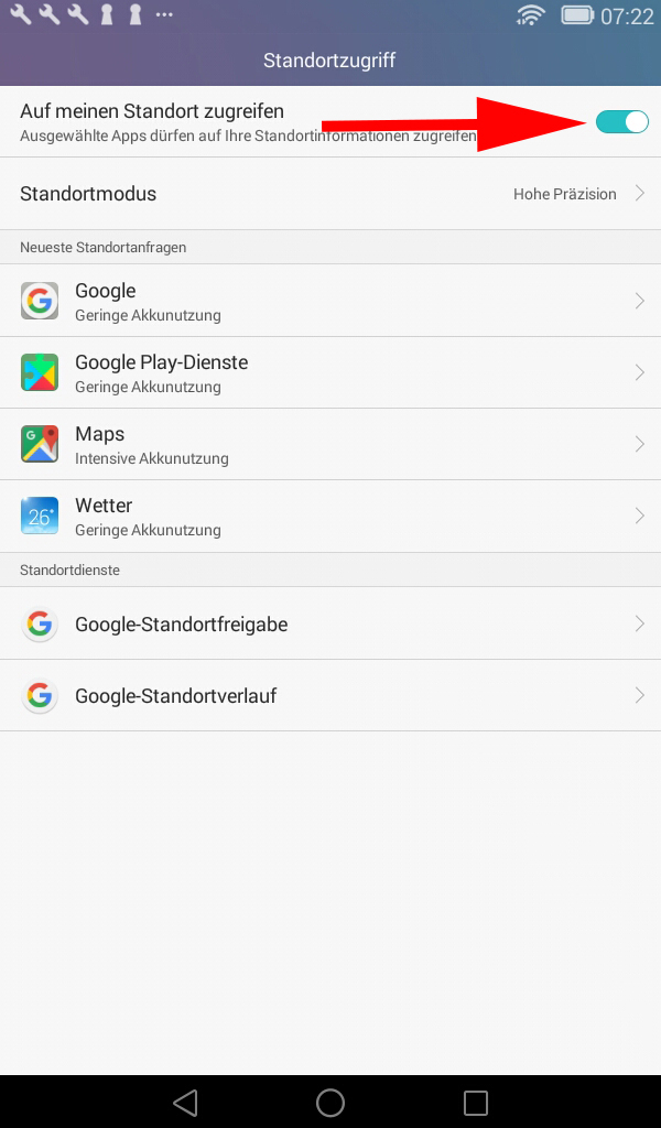 Ortung einschalten auf Android Gerät