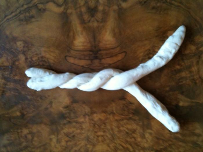 Wickeln Sie den einen Strang um den Anderen.