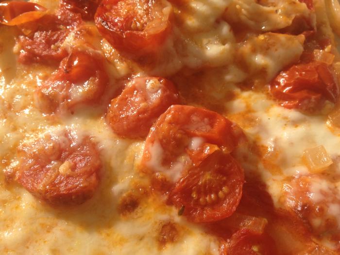 Pizza für ca. 20 Minuten bei 200 Grad in den Offen. Wenn möglich Unterhitze mit Heissluft kombinieren.