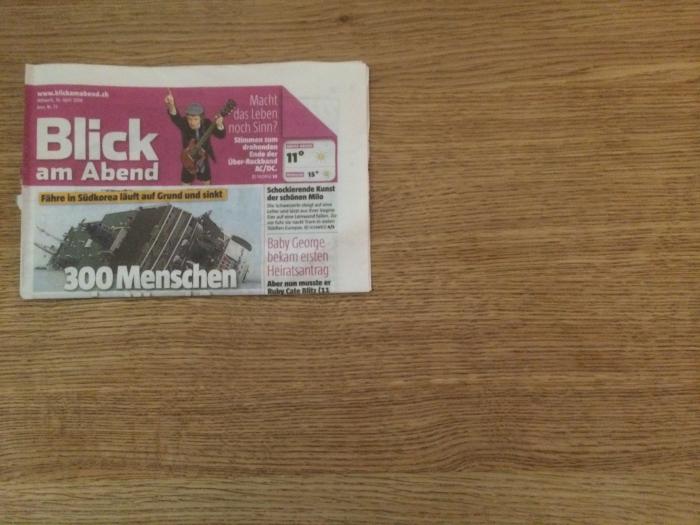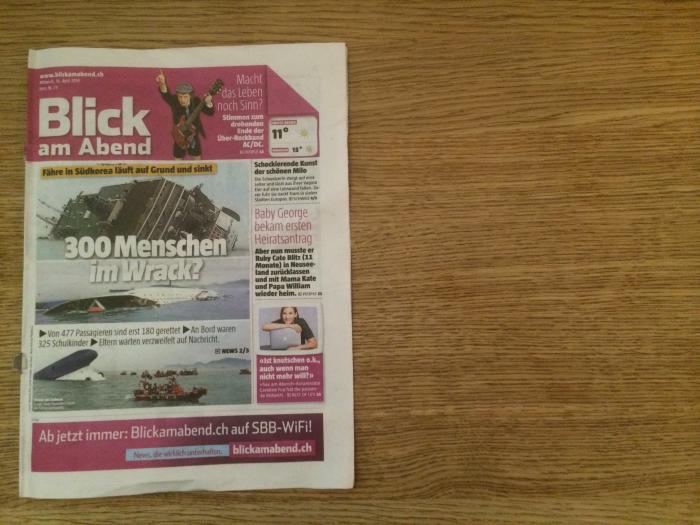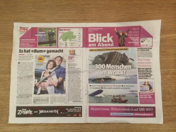 Umschlagblatt vom Rest des Blick am Abend trennen und auf dem Tisch ausbreiten.