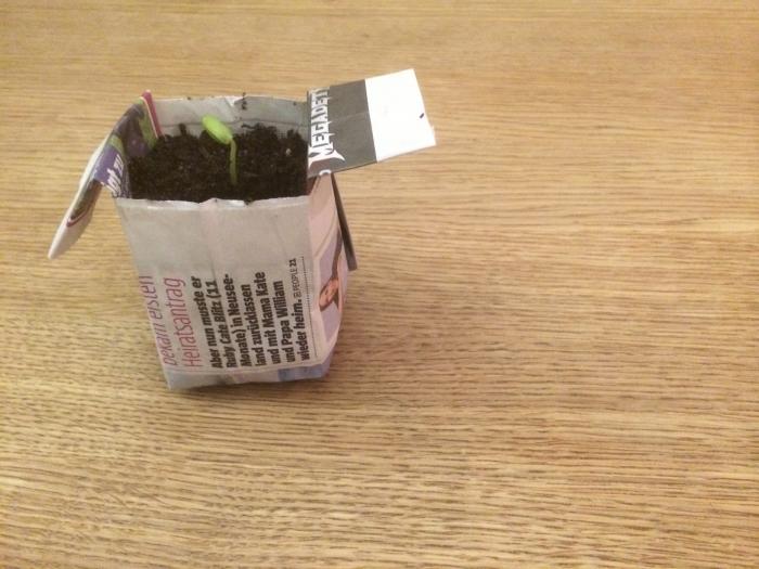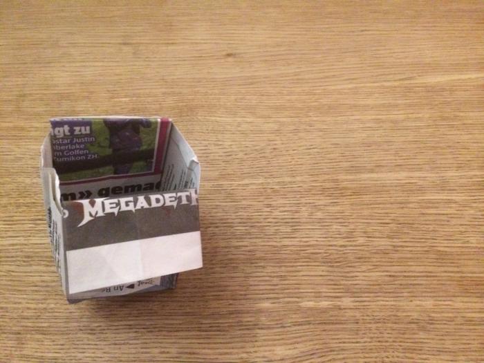 Von den Seiten her zusammendrücken und Boden flach machen.