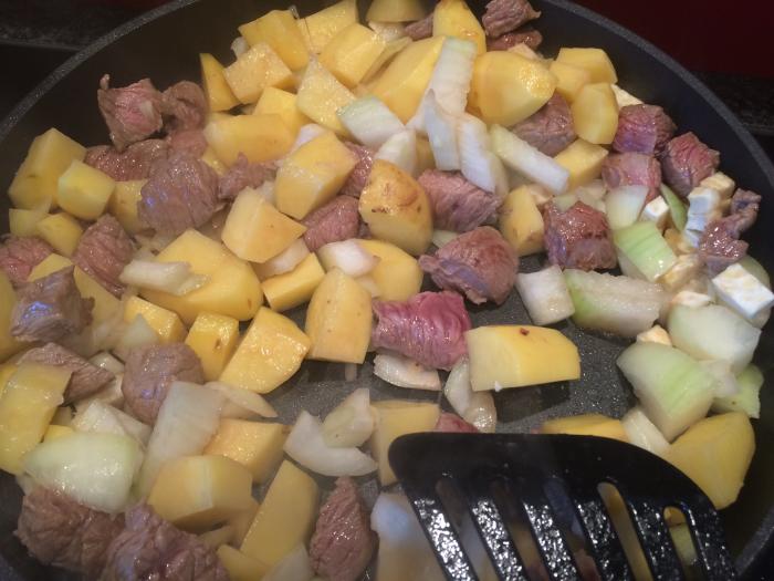 Rindfleischwürfel anbraten.