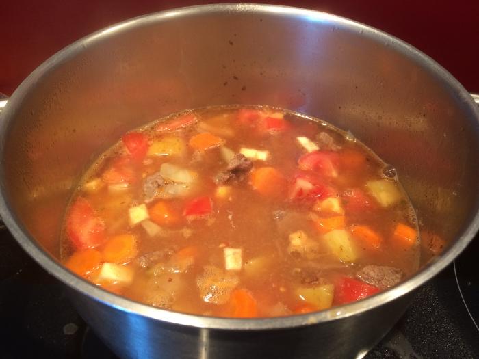Gemüse zugeben, eine weitere Stunde köcheln.